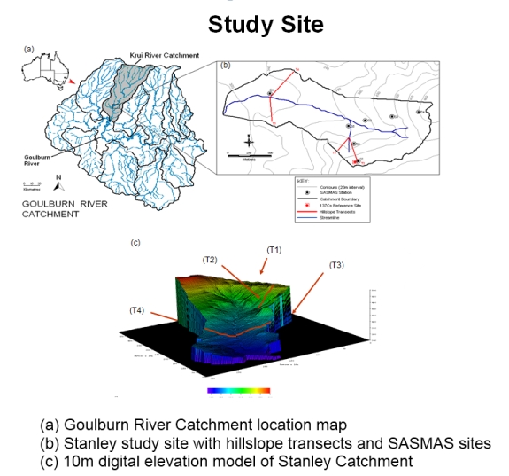 Stanley Property Study site![]() Location: Tributary of Krui River, Upper Hunter Valley, NSW, Australia. Geology: Tertiary basalt of Liverpool Range beds Soils: Red and black (cracking clay) basalt soils. Ant Hill (ah), Bow (bw) & Yaramoor (ym) Vegetation: Native pasture with scattered eucalytps Land Use: Biodynamic beef cattle grazing. Portions of catchment previously cropped (along lower flats) Existing Infrastructure/Data: 7 permanent monitoring stations (incl1 weather station and soil moisture, T monitoring to 900mm depth). Last Updated on 12 Dec 2011: by Tony Wells |